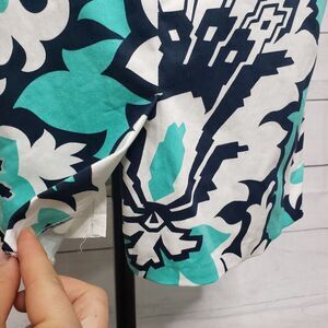 Banana Republic Milly Collection Eden Rock dress in Pool Green white and black navy. floral pattern. Square neckline. invisable zipper. dry clean. shell: 98% cotton 2% elastane lining: 95% polyester 5% spandex Measurements are approximate and are taken with a fabric tape measure. Armpit to armpit: 14.75" Shoulder to bottom hem: 35.5" armpit to bottom hem: 27"