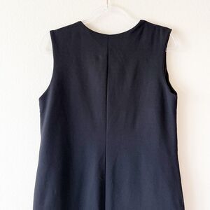 Style tags - minimalist, modern, chic, classic, elegant, timeless, versatile, workwear, office, business casual, cocktail, midi dress, sleeveless, black dress, column dress, sheath, ponte knit, tailored, polished, sophisticated