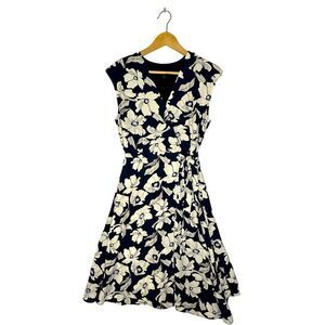 Banana Republic Navy Floral Midi Wrap Dress Dress Size 4