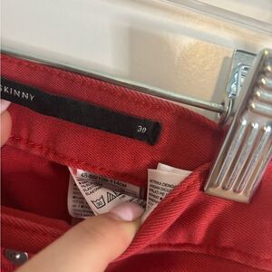 Chic red skinny jeans. Sleek and comfortable. Ideal for any outing. Banana Republic Red mid rise Skinny Jeans size 30 NWOT