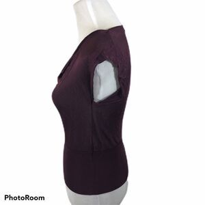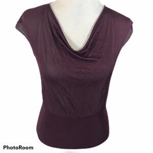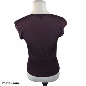 In great condition, only flaw is a small snag in the fabric on the shoulder from the tag-see photo. Banana Republic sheer short sleeved blouse in a deep Martin color. Very sexy, can be dressed up or down!!