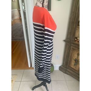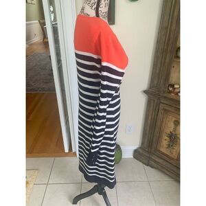 Banana Republic Stripped Navy Blue, Orange and White Dress Size Medium.