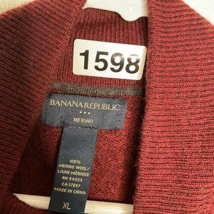 Banana Republic Sweater Mens XL 100% Merino Wool 1/2 Zip Knit Pullover Burgundy