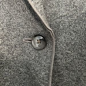 Beautiful, unstructured Blazer. Single button, front closure, with open pockets, button sleeves, and split tail in the back. Piping detail around the edges gives it a more finished look. It is a stretchy, but thick material.