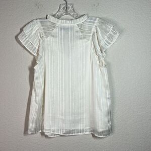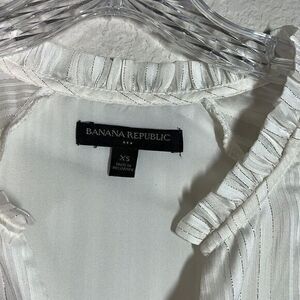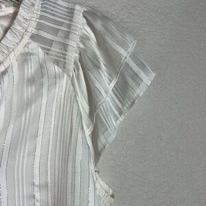 Banana Republic White Stripe Flutter Sleeves Ruffled V Neck Top Women's XS