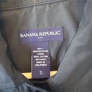 This Banana Republic button-up jacket combines a sleek design with lightweight comfort. Its tailored fit and versatile style make it suitable for various settings.