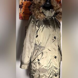 Banana Republic Women’s Parka Removable Hood Olive Green Coat EUC!!