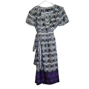 Banana Republic Women's White/Black/Purple Poly Print Short Sleeve Wrap Dress EUC sz 0