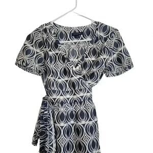 Banana Republic Women's White/Black/Purple Poly Print Short Sleeve Wrap Dress