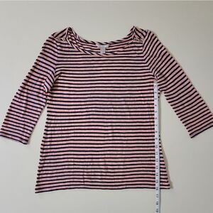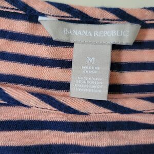 Banana Republic Women's Coral and Navy Linen Stripe Quarter Length Sleeve Top