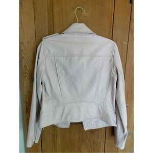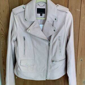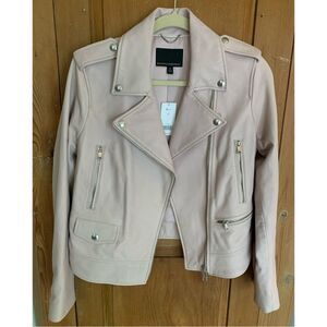 Banana Republic blush light pink leather moto jacket with silver hardware and zip-up front closure. Zip wide and front pockets along with snap pocket. Long sleeves with long zippered cuffs. Fully lined. NWT great lightweight anywhere jacket!