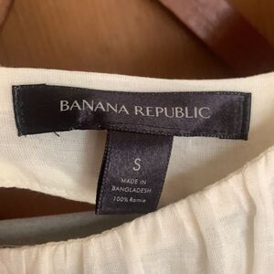 Banana Republic off-white linen dress in a lightweight linen with an open back and buttons at neckline. Fabric belted elastic waist and fully lined. Balloon sleeve length to elbow. Perfect Spring/summer mini dress with full skirt. NWT