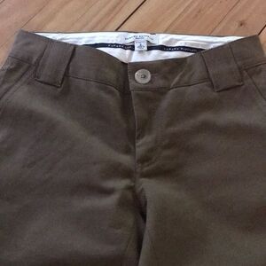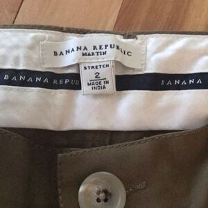 Banana Republic tan stretch Martin style capris. Button waistband. Wide belt loops. Front side slant pockets. Straight leg. Size 2. New, no tags. Nonsmoking home.