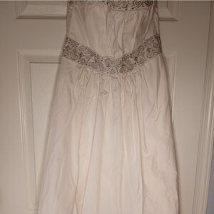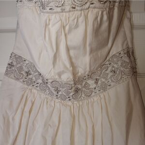 BananaRepublic10PCreamEmbroidered RuffleWaist StraplessPocketsLined Women'sDress.