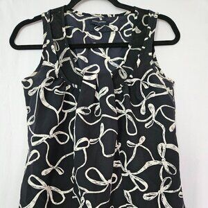 Banana Republic Black & Cream Sleeveless Bow Print Blouse Size S