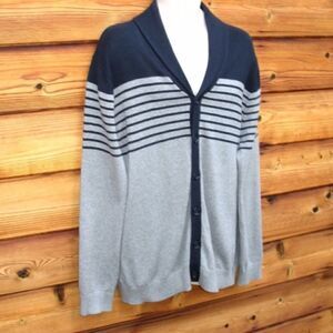 Banana Republic Shawl Collar Cardigan Sweater *Excellent condition. No stains, holes or pilling. Details: Banana Republic Size: X-Large Color: Gray/Blue Button front closure Ribbed cuffs and hem 100% Cotton Measurements: Length: 31" Chest: 50" Waist: 48