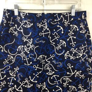 Banana Republic Blue Port Anchor Pencil Skirt. Size - 6. 97% cotton, 3% spandex. Printed design of anchor & rope in blue, navy & white. Skirt zips closed on center back & has a 6” center slit. Skirt in excellent shape w/no tears or stains. #nautical #boat #career #business