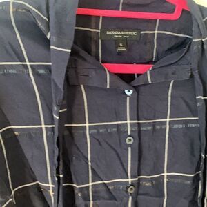 Banana Republic EUC blue white/black striped long sleeve button down Dillion shirt Size small