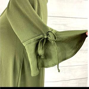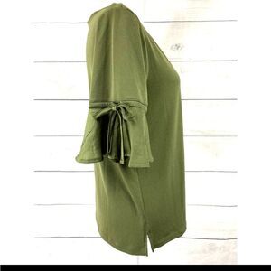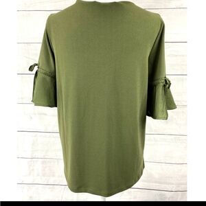 Cute V neck blouse with flutter sleeves and ties in polyester and elastin for a beautiful drape and fit. Like new