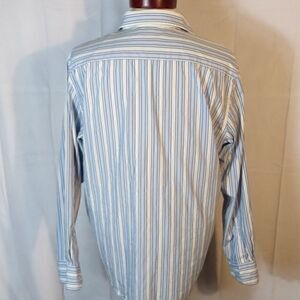 This blue and white striped long sleeve button down Banana Republic shirt is a size 16-16.5 with a pit to pit measuring 24-1/2". In excellent condition. All offers are welcome.