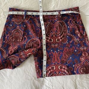 Excellent condition red and dark blue cotton and spandex paisley shorts. Great fit and a comfortable stretch.