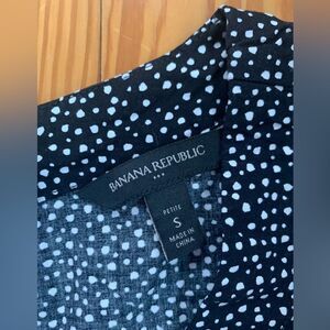 Worn once. Black with polka dots. Pockets. 3/4 sleeves. Button in back. Size S