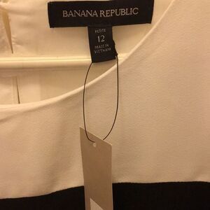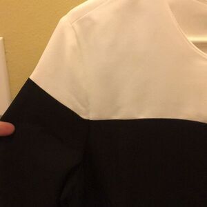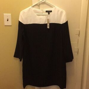 Black and white color block sheath dress. Zipper closure in back with cloth button. Hidden pockets. Polyester. Size 12P. Brand new with tags. Original price $138. Can be dressed up or down whatever your style!
