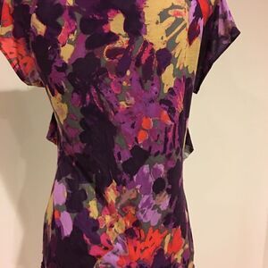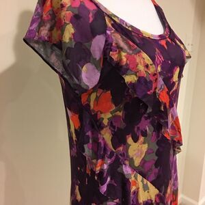 Great year-round comfortable top. This top features a ruffled asymmetrical front design. Arm to arm measurement is 16 inches