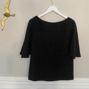 Banana Republic Heritage Collection Studded Flutter Blouse in size small. Black with bronze studs. Flutter short sleeves. Gorgeous draping. Excellent condition. No flaws to note. See measurements in pictures.