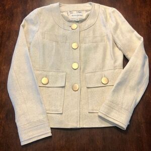 Banana Republic cream-colored, Jackie O, tailored blazer with metallic gold.