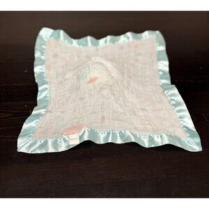 Bananafish Blue Satin Trim Baby Lovey Security Blanket With Plush Giraffe Head