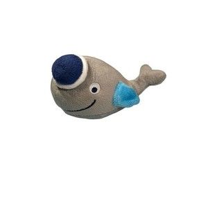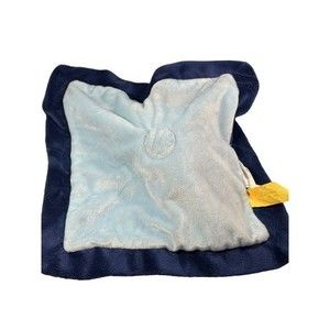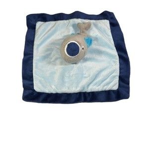 Very cute little lovey for your little sailor. This 12" x 12' lovey is light blue with dark blue edging. The center figure is a little smiling gray whale with light blue fins and a dark blue hat. The lovey is very soft.