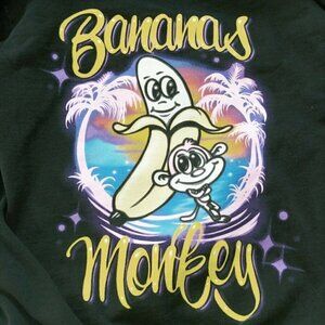Bananas Monkey Pullover Hoodie Unisex Small Black Airbrush Graphic Streetwear