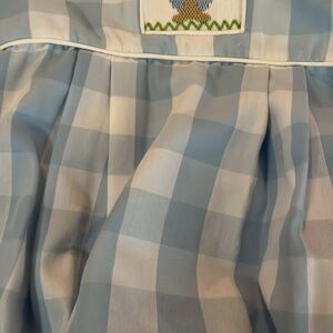 Banana split baby blue and white checked with cross stitched Bunny in the chest size 9 month