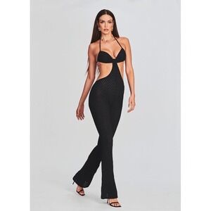 Bananhot Anna Crochet Knit Halter Jumpsuit Cutout Bell Bottom Pants Size Small