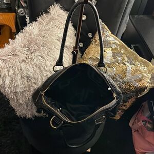 Bananna republic BR alligator/crocadile black patent leather satchel bag purse