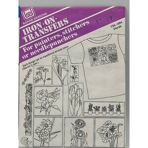 Banar Designs Iron-On Transfers Set of 2 Butterflies Flowers VTG Needlepoint