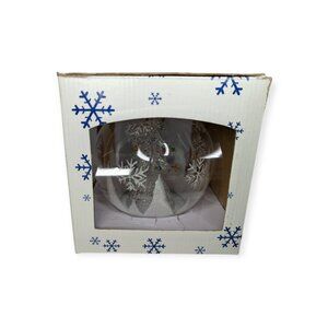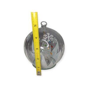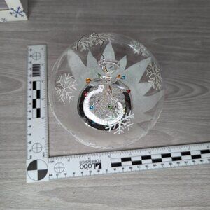 Can be hung from a Christmas tree or sit on a flat surface, one rubber foot is missing.