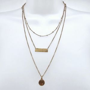 Bancroft Layered Necklace Gold Tone Hammered Pendants Triple Strand Draping. Necklace is 17" adjustable to 20". Still has tags. In great condition..