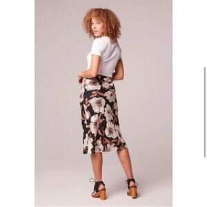 Band Of Gypsies BOG Collective Size S RHO Floral Slip Midi Skirt Black Cream Pull On NEW
