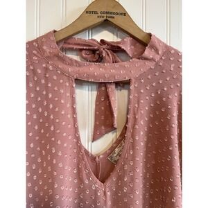 Band Of Gypsies Blouse M Pink Blush Tunic Sheer Angel 3/4 Sleeve Tied Flowy NWT