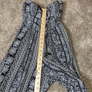 Band Of Gypsies Jumper Black White Sleeveless Sweetheart Flare Smocked wide leg SZ SM