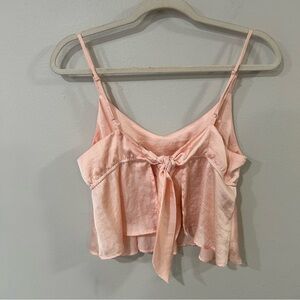 Band Of Gypsies Pink Camisole Peplum Back Tie Faux Satin Crop Top Size Small