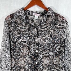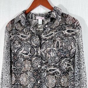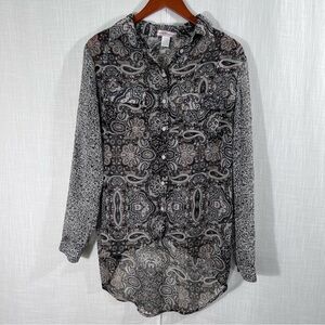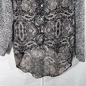 Band Of Gypsies Sheer Button Front High Low Paisley Floral Boho Blouse Top Sz M