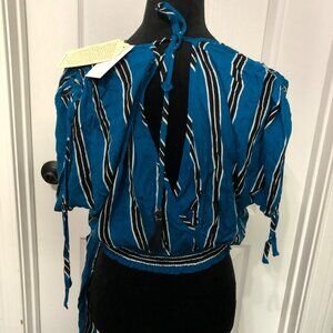 Band Of Gypsies Womens Blue & Black Striped Wrap Top Size M 100% Viscose NWT