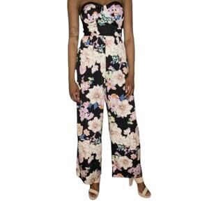 Band Of Gypsies Womens Size Large Sapphire Trendz Black Floral Halter Jumpsuit