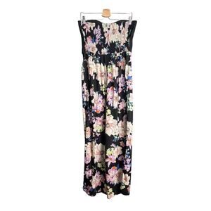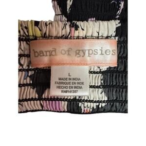 Band Of Gypsies Womens Size Large Sapphire Trendz Black Floral Halter Jumpsuit, pull on, wide leg flowy romper, smocked material provides some stretch on top