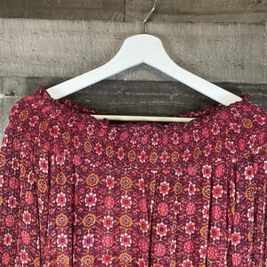 Band Of Gypsies Women’s Size Small Blouse Burgundy Red Pattern Off The Shoulder