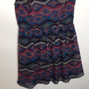 Band of Gypsies mini dress. This might even creep a bit into a midi dress, measurements are in photos. Gorgeous geometric Aztec Southwestern print. Cap sleeve and great figure flattering style with a gorgeous flowy skirt. Size medium, in excellent preloved condition. Perfect concert or festival dress. Could be dressed up or down so easily. Fun flirty style. Fully lined. Elastic at waistband for added comfort and stretch.