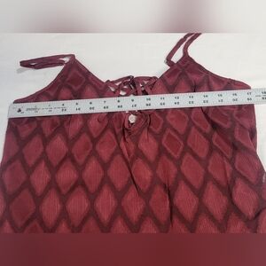 New With Tags Band Of Gypsies Band of the Free Lila Merlot Midi Dress Size small, lace up front, adjustable straps, lined top and upper skirt, side slit skirt, diamond pattern print.